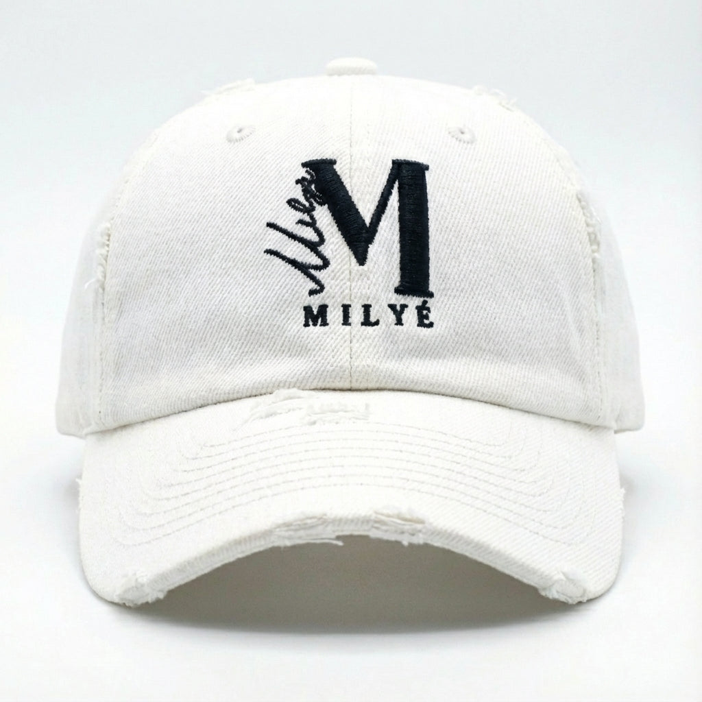 Elevate your everyday look with The MILYÉ Vintage Distressed Denim Hat, crafted with premium blue denim and signature designer distressing for a bold, timeless edge. Featuring the iconic embroidered MILYÉ “M” logo front and center, this piece delivers the perfect blend of luxury and street culture.